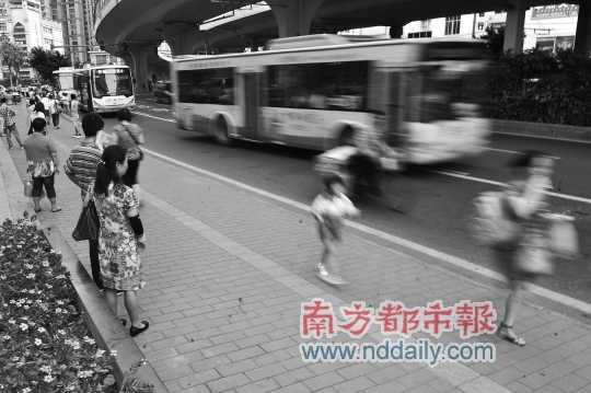 “这个站牌设了都快1年了,一直没有遮阳篷!”据何小姐介绍,南岸路站位于南岸路的一个装饰材料城的门口,由于附近聚集了商铺、小区、小学等,人流量较大,附近许多街坊出行都会在该站点候车。但因为车站一直缺少遮阳篷,市民在等车时只能在离车站约10米远的材料城商铺门口遮阳挡雨,一旦有公交车靠站,他们才跑出来。