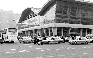 出租车都等在站外 本报记者 白石 摄