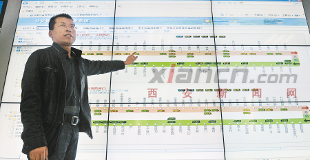 “智能公交到底和普通公交车有啥区别”?昨日上午,带着疑问和好奇,八名私家车主来到西安公交营运调度指挥中心。在这里,墙上一块大电子显示屏,就像一双“千里眼”,实时监控着43路等十余条公交线路的运行状况。