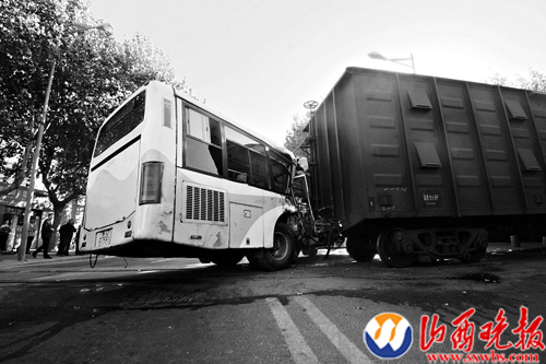 17日14时许,位于青岛市李沧区永平路附近的一处专用铁道口发生事故。一列正在缓慢倒车的货运火车撞上一辆326路公交车,致使公交车上的乘客及一名机务人员受伤。目前,伤者已经被紧急送往医院实施救治。据统计,事故共造成37名乘客受伤,其中12人需留院观察,2人伤势严重。