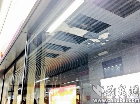 昨日,记者在地铁光谷站内的候车区看到,隧道内有的地方滴水成“帘”,轨道基坑里局部积水有三四厘米深。受漏水影响,隧道顶有10多处涂料层脱落,还有一些地方的涂料层因受水浸泡,出现松动现象。