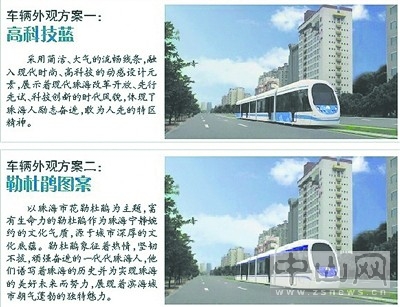 备受关注的珠海有轨电车1号线首期工程动工已2个月。19日,中国北车大连机车车辆有限公司传来好消息:其全资子公司——北车装备工程有限公司日前已与珠海城建集团正式签订1号线首期工程正线土建及车辆采购合同,共计3.4亿元。据悉,这是我国“无辫”现代有轨电车项目拿到的首个车辆订单。 记者还从城建集团了解到,列车外观设计已初步敲定,早前公示的“高科技蓝”(如图)及“勒杜鹃图”均被采用。 ■签下12列低地板列车 据大连机车有限公司透露,此次采购合同包括建造12列列车和线路建设工程。而签约的车辆选用的是绿色、节能、环保的100%低地板现代有轨电车。 据悉,珠海现代有轨电车1号线首期工程线路初步确定将设置14座车站,全部为地面站;并设有车辆段和控制中心。首期工程将由北车装备工程有限公司承建,预计明年11月珠海第十届中国国际航展前完工。 ■建成全国首条示范线 该公司相关负责人表示,由这种车辆构建的有轨电车系统,符合珠海旅游观光城市的定位。大连机车公司将以全新的设计理念,采用前卫的地面供电系统技术,着力把珠海有轨电车1号线打造成我国首条“无辫”现代有轨电车示范线。 ■列车外观初定两款 除采购合同已签外,记者从市城建集团了解到,列车外观设计日前也已初步敲定。 据城建集团相关负责人透露,为突出珠海海滨城市的特点,车辆外观以蓝色为主线,体现“蓝色珠海,科学崛起”的发展战略,车头会以珠海城雕 “珠海渔女”为标志。除此外,城建集团还准备了“高科技蓝”及“勒杜鹃图”两个设计方案,其中“高科技蓝”重点融入了现代时尚、高科技的动感设计元素,目的是展示现代珠海改革开放、先行先试的风貌,而“勒杜鹃图”则是以珠海市花为主题,表现珠海宁静婉约的文化氛围。 “两款设计方案早在10月中旬已开始公示,最终发现市民对两个方案都给予肯定,所以决定两个方案一同采纳。目前计划5列列车会用‘高科技蓝’的设计方案,5列列车会用 ‘勒杜鹃图’方案,剩余的两辆正在考虑综合两个方案的元素再加以设计。”城建集团相关负责人表示。