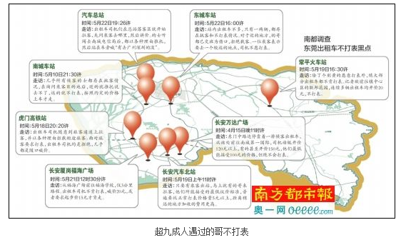 汽车站、火车站、高铁站门口,毫无意外地成为不打表情况最多见的前四大场所。长安、虎门等镇街的不打表现象也比较普遍,位列常见不打表场所的第二位。