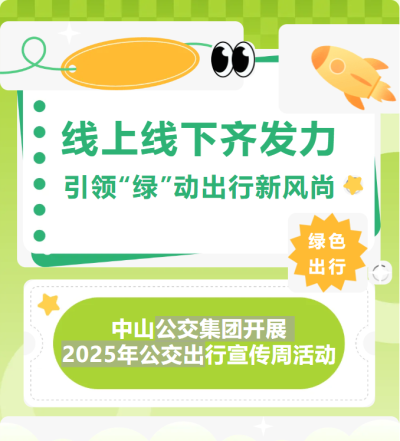 为深入推进绿色出行行动,积极倡导绿色低碳的生活方式,9月19—20日,由中山市交通运输局、中山市交通运输行业党委指导,中山公交集团主办的“优选公交,绿色出行”2025年公交出行宣传周活动在中山汽车总站、深中跨市公交博览中心公交枢纽火热开展。活动采用线上与线下相结合的方式,通过多元特色环节,吸引了众多市民踊跃参与,营造了浓厚的绿色出行氛围。