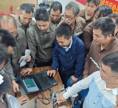 古云峰老师在后处理传感器故障诊断课程中,现场演示尿素喷嘴的检测方法,指导学员进行NOx传感器的实际测量。学员们围绕实训车辆,通过亲手操作掌握诊断要领。