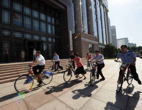 今年初,国家发改委会同中宣部、教育部、科技部等部门联合下发《“十二五”节能减排全民行动实施方案》,倡导“135”出行方式,即1公里以内步行,3公里以内骑自行车,5公里以内乘坐公共交通工具;并提出加快推进公务用车制度改革,开展公务自行车试点。此次交通运输部共投入了50辆订制的自行车,车身印有“公共自行车”和“低碳交通、绿色出行”的字样,车前有筐,便于放置文件材料。