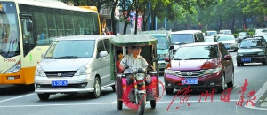 而专门划出的公交车道被无牌的机动三轮车、无处可走的自行车“霸占”,再加上过多的路口,上下班高峰时公交车被迫挤进唯一一条普通车道。