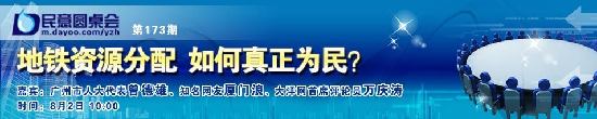 大洋网讯(记者 方浩娜)近日,国家发改委正式批复广州市新一轮城市轨道交通近期建设规划,同意广州新建7条共228.9公里城市轨道交通线路。新批复的7条地铁线路中,有5条新线路将通往萝岗、从化、增城、南沙等。一些荒无人烟的地段为何早早通地铁,而人满为患的地方却迟迟不通?今日(2日)的《民意圆桌会》上,广州市人大代表曾德雄指出,地铁作为一种公共交通工具,以优先满足市民交通出行需求,而不能为了经济利益偏离其本质属性,他呼吁地铁回归公共交通属性。