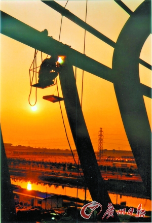 ②2006年4月,广州地铁四号线的黄阁站钢结构安装焊接。程飞 摄