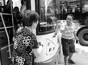 乘客阿婆先后两次下去劝阿伯不要挡车,遭来谩骂。 信息时报记者 巢晓 萧嘉宁 摄