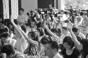 会场气氛热烈,记者纷纷举手提问。