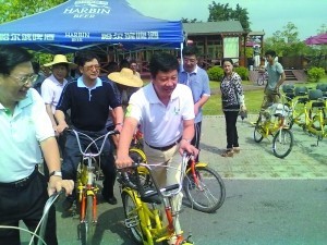 广州市市长陈建华来到白云湖和拜客们一起踩单车,绕湖一圈。 信息时报记者 熊佳焰 摄