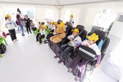 儿童体验安全座椅。