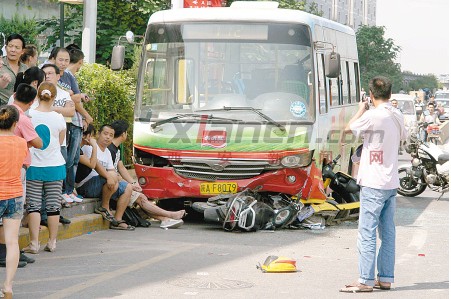 “当时现场一片混乱,那场面可惨了,过路群众和周围做生意的人都跑过来围观。”附近农业银行的保安李建西说,他看到公交车上的乘客跳下车后个个脸色煞白,被撞的电动车司机躺在路边不停呻吟。