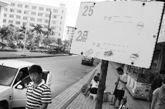 军分区站站牌尚未更新。记者 张锋锋 摄