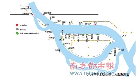 针对目前现有水巴线路交通接驳不足的情形,规划也提出要充分考虑水上客运设施与海珠区轻轨环线,以及周边地铁、公交、出租、自行车等其他交通方式的衔接,特别是和2013年将开工、20 15年建成运营的海珠区环岛轻轨接驳。