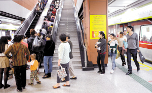 佛山地铁3号线建成初期预计客流量为广佛地铁的四倍以上。图为搭乘广佛地铁的乘客下车出站。/佛山日报记者崔景印摄