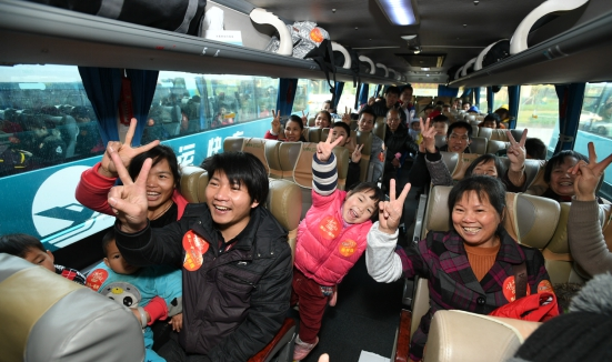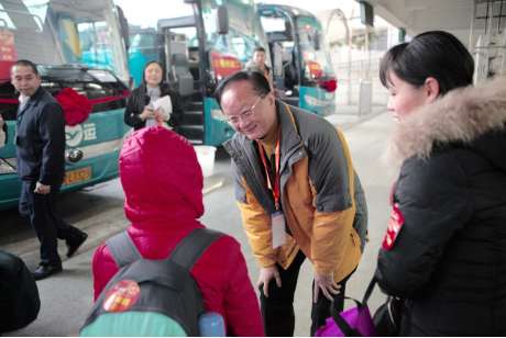 广东粤运交通股份有限公司董事长、广东省城市公共交通协会会长禤宗民介绍,因为了解到返乡务工人员归家心切,公司员工早上5点左右就开始为发车作准备。“公司今年加大公益活动投入,爱心大巴线路从去年的5条增至10条、车辆数从7台增至15台,运送旅客从去年的258名增至600余名。从佛山、中山两地出发,开往广西南宁、贵港、柳州、梧州、桂林、百色、玉林、宜州、昭平等9个地市,中途停车点还特别新增平乐、龙圩、平果等小站,最远距离长达800公里,近十小时的路程。每辆车都配备两名经验丰富的老司机,对边远乡村,还安排人员做好‘最后一公里’的衔接,务必将每位老乡安全送到家。”
