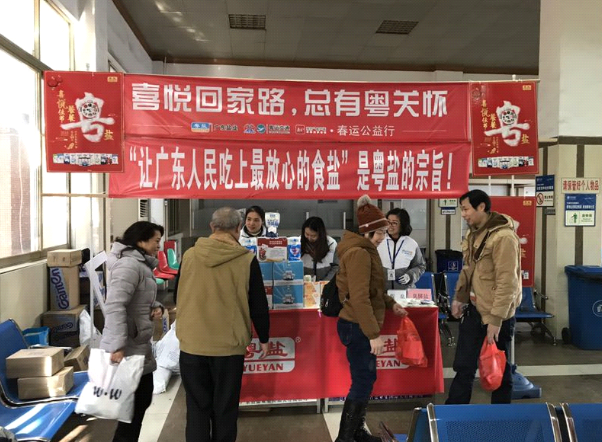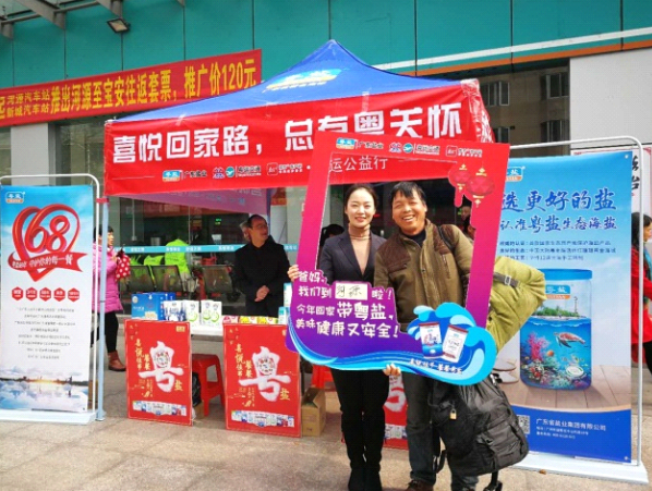 2月5日,广东粤运交通携手广东盐业、南方报业分别于广州、佛山、河源、汕头、汕尾、肇庆、茂名等15地粤运交通汽车站、高速服务区开展“喜悦回家路,总有粤关怀”公益行活动。广东盐业以安全用盐科普知识和高品质粤盐产品喜悦相送;粤运交通积极响应国家“厕所革命”号召,以干净舒适的休息空间喜悦相迎;南方报业以丰富多彩的第一手资讯喜悦相随。三方携手,各展所长,以诚挚的关怀为春节回家的旅客打开温暖喜悦回家路。