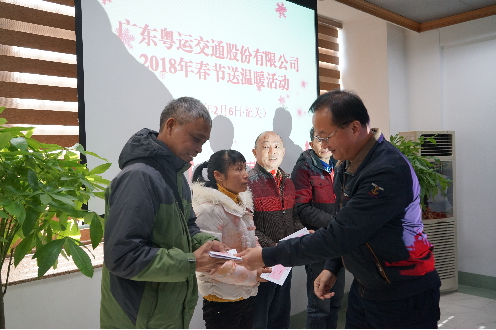 2月6日,广东粤运交通董事长、省城公共交通协会会长禤宗民到韶关粤运开展2018年春节“送温暖”活动,与韶关粤运所属单位老党员、困难党员和困难职工5名代表亲切座谈,并代表公司为他们发放了春节慰问金。
