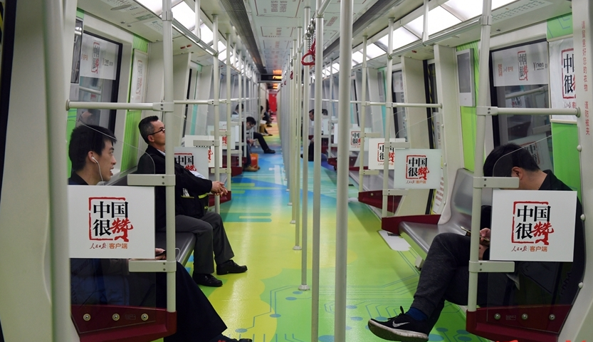 3月 12日,由广州地铁和人民日报社新媒体中心共同策划的全国首列“中国很赞”主题地铁列车在广州地铁八号线上线运营。移动支付、共享交通、高铁等新时代中国元素呈现在车厢里,加上全国网友对祖国的美好祝福,主题列车洋溢着积极向上的浓厚氛围。