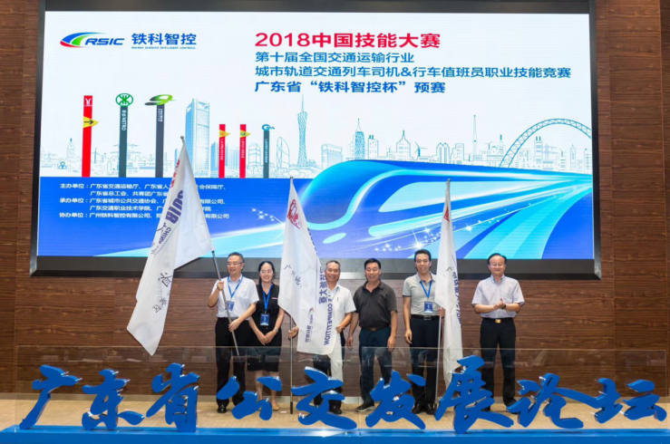 9月25日下午,随着广东省城市公共交通协会会长禤宗民、广东省交通工会委员会主席阮国廉、共青团省委青年发展部副主任科员林炳秀为广州地铁集团有限公司、广东交通职业技术学院、广州市轻工技师学院等三个赛区进行接旗,2018年中国技能大赛——第十届全国交通运输行业职业技能大赛城市轨道交通技能竞赛广东省预赛(以下简称“省赛”)正式启动。