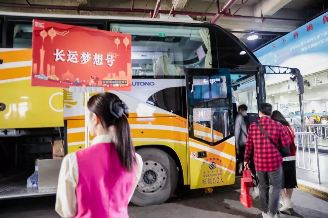 首班 “长运梦想号”返乡班车也现场发车,免费送粤北务工人员踏上幸福回家路。据了解,“长运梦想号”站点遍及连州、连山、连南、清远等地,春运期间将陆续为粤北务工人员送上免费返乡车票。