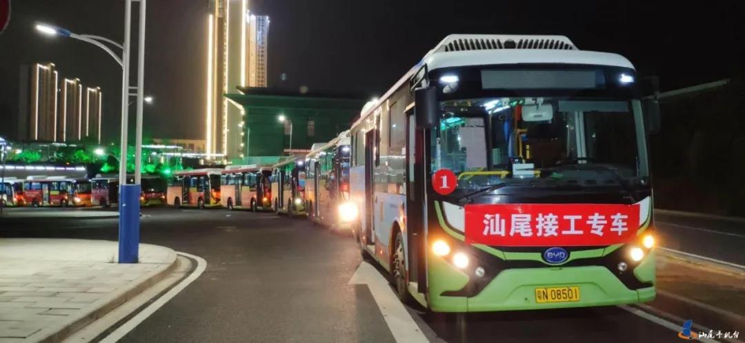 3月2日晚上,从四川省眉山东站出发,搭载800名四川籍来汕务工人员的G6341专列到达汕尾高铁站。在市人社部门、市交通局的组织协调下,汕尾粤运公司派出41辆新能源公交车,到高铁站接回800名四川籍来汕务工人员。助力企业的复工复产工作,让外地员工安全到岗、安心作业。