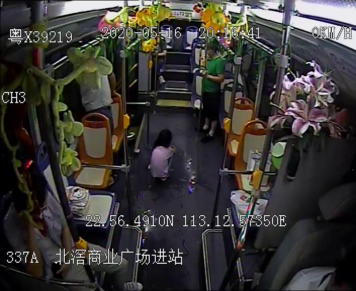 当晚8点左右,顺汽公交337线驾驶员卢振国运营公交车途经北滘悦然广场路段。据卢师傅回忆,当时车上还有4名男乘客,暴雨已经下了将近1个小时,部分路段积水严重,水深已及膝;尽管路上车辆都格外小心,也难逃“死火”状况。就在此时,卢师傅发现车行前方有车辆泡在水中,已打不着火,过往车辆带动的水流使车出现“漂浮”状况,随时可能影响路上其他车辆行车安全。“我当时以为车上没人了,毕竟雨太大了不安全。”卢师傅说,但驶近后却发现,车上竟然还有人,且水深已接近车门把手,无法正常打开车门。