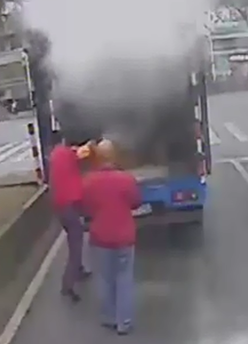 1月2日上午,佛广公汽桂城分公司桂19线车长潘文斌在执行营运任务途中遇到一辆冒滚滚浓烟的货车,并主动拿起灭火器上前协助扑灭。事后,货车车主对潘车长的善举表示感谢及支持!
