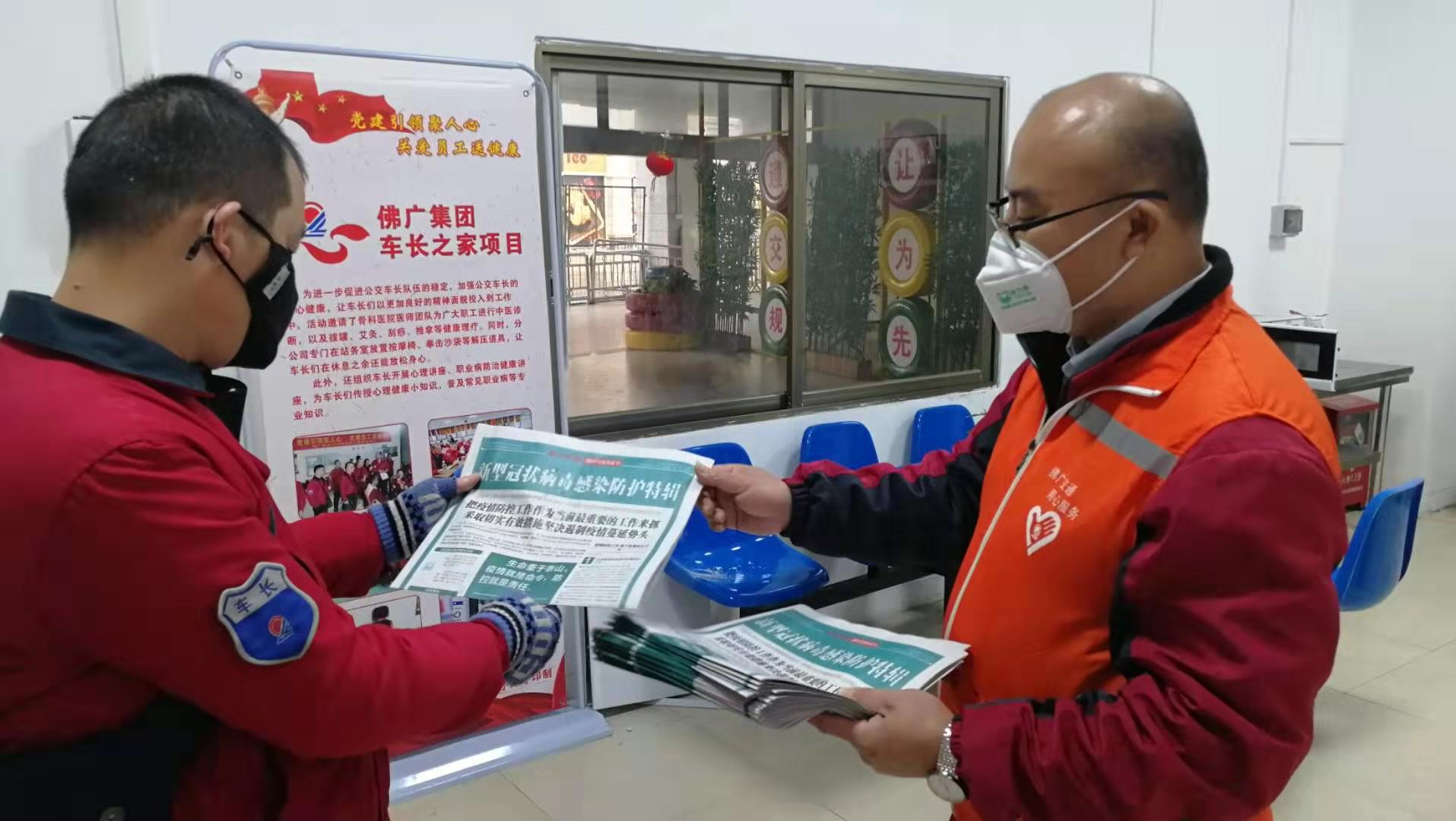 佛广集团坚持党建引领,充分发挥党组织战斗堡垒作用,号召全体党员迅速行动起来,在疫情防控工作岗位上冲在前、作表率,发挥引领效应。同时,强化正面宣传,积极挖掘抗击疫情的有效举措和先进典型事迹,努力提高宣传的“速度”、“温度”和“高度”,有力增强了信心、凝聚了力量。如佛广集团党总支发挥战斗堡垒作用《“先锋小站”筑牢阻击防线》获学习强国报道、《党旗飘扬,疫情防控做好五个到位》获佛山日报报道;党员的哥庞建波事迹《“急人所急,使命必达,这是一个交通人的本分,更是一个党员的责任”》获学习强国报道;党员车队长邝居伟事迹《党员车队长驱车1400公里,赶回岗位战“疫”》获中国人民共和国交通运输部官方网站刊登;佛广集团女职工坚守一线事迹《佛山南海多名巾帼公交车长坚守一线,战“疫”中被赞美为“五仙女”》获广州日报报道;佛广集团团总支部助力企业复工复产事迹《青年团员相约志愿服务,助力企业复工复产》获网易新闻报道等。