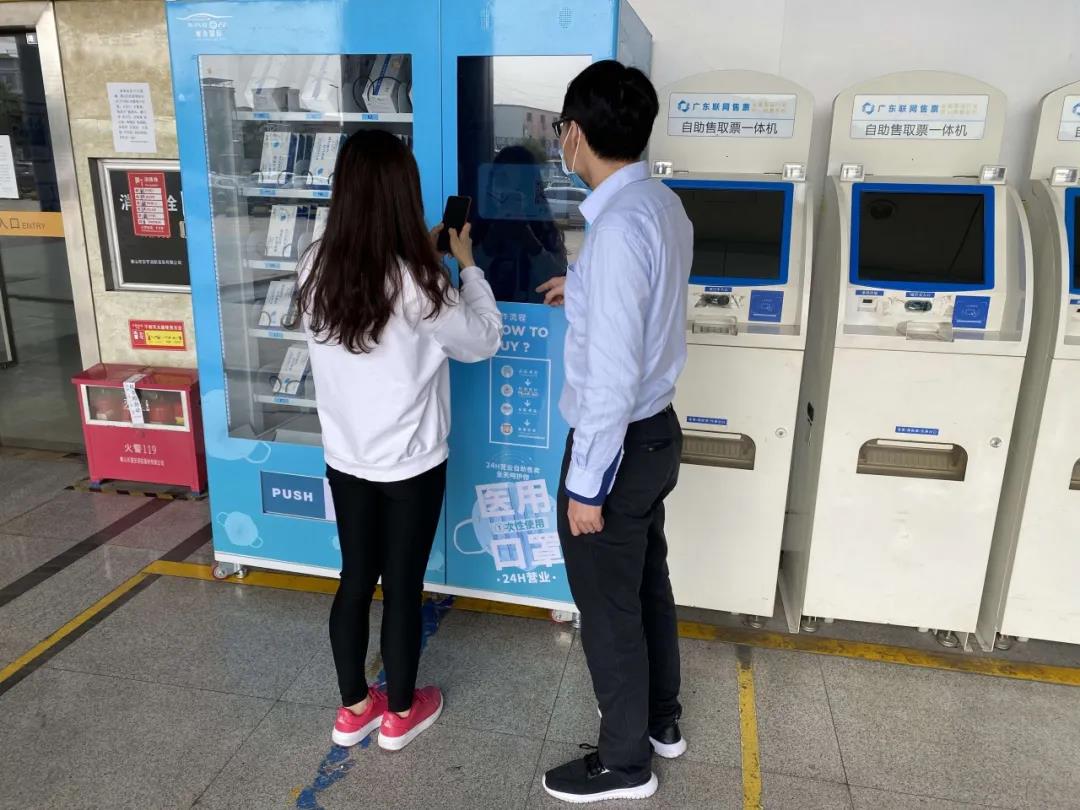 为方便旅客购买正规口罩,4月10日,大沥汽车客运站积极响应政府号召,在大沥汽车客运站自助售票区域投放一台口罩自助售卖机。