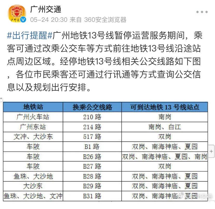 受5.22特大暴雨影响,地铁十三号线官湖站、新沙站等站外出现区域性水淹和洪水,洪水倒灌至官湖站、新沙站和官湖至新沙隧道区间及相邻的官湖至新塘部分隧道,导致出入线段无法出车,十三号线从5月22日起停止对外运营服务,并同步启动应急公交接驳。