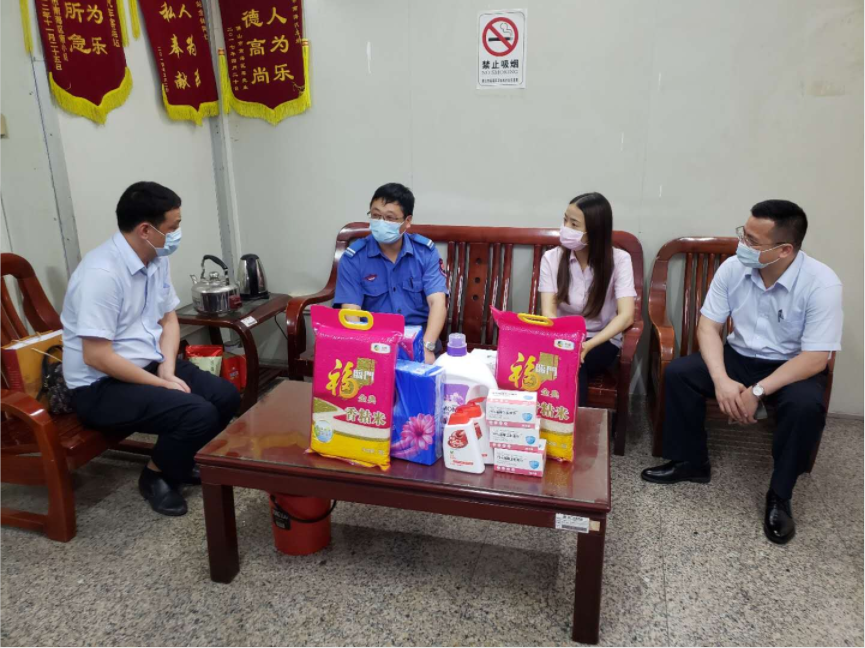 为做好疫情防控期间对滞留湖北的工会会员的关爱服务工作,5月11日下午,佛广集团客运联合工会主席唐一弘代表公司工会向滞留在湖北的安保员姜爱灵开展慰问活动,传达公司对他的关怀之情,并为他准备了一些日常用品,送上一份浓情和温暖。