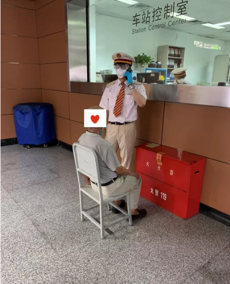 票亭岗马上通知了值班站长郑重,郑重到场后,首先安抚了黄婆婆的不安情绪并主动询问孙女的手机号码,但黄婆婆的老人手机里面只有自己儿子的电话,并没有孙女的电话号码,于是郑重马上拨打黄婆婆儿子的电话,通过联系其儿子又联系到婆婆的孙女,并同时通知车站行值联系东山口站,在两个车站之间开启寻人广播,终于,五分钟后,东山口传来消息,黄婆婆的孙女听到车站广播后得知外婆在烈士陵园站便利店前等待,于是赶过去最后跟外婆会合。