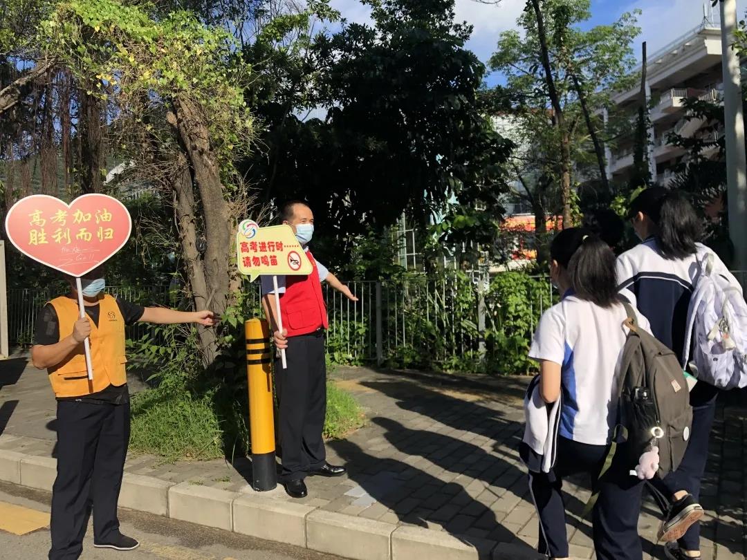 疏导乘客、维持站台乘车秩序、协助现场交警在路口疏导周边车辆通行……考场周围都能看到爱心助考队的身影;遇考试学生上下公交车时,手动点赞为他们加油鼓劲,护送考生进考场。
