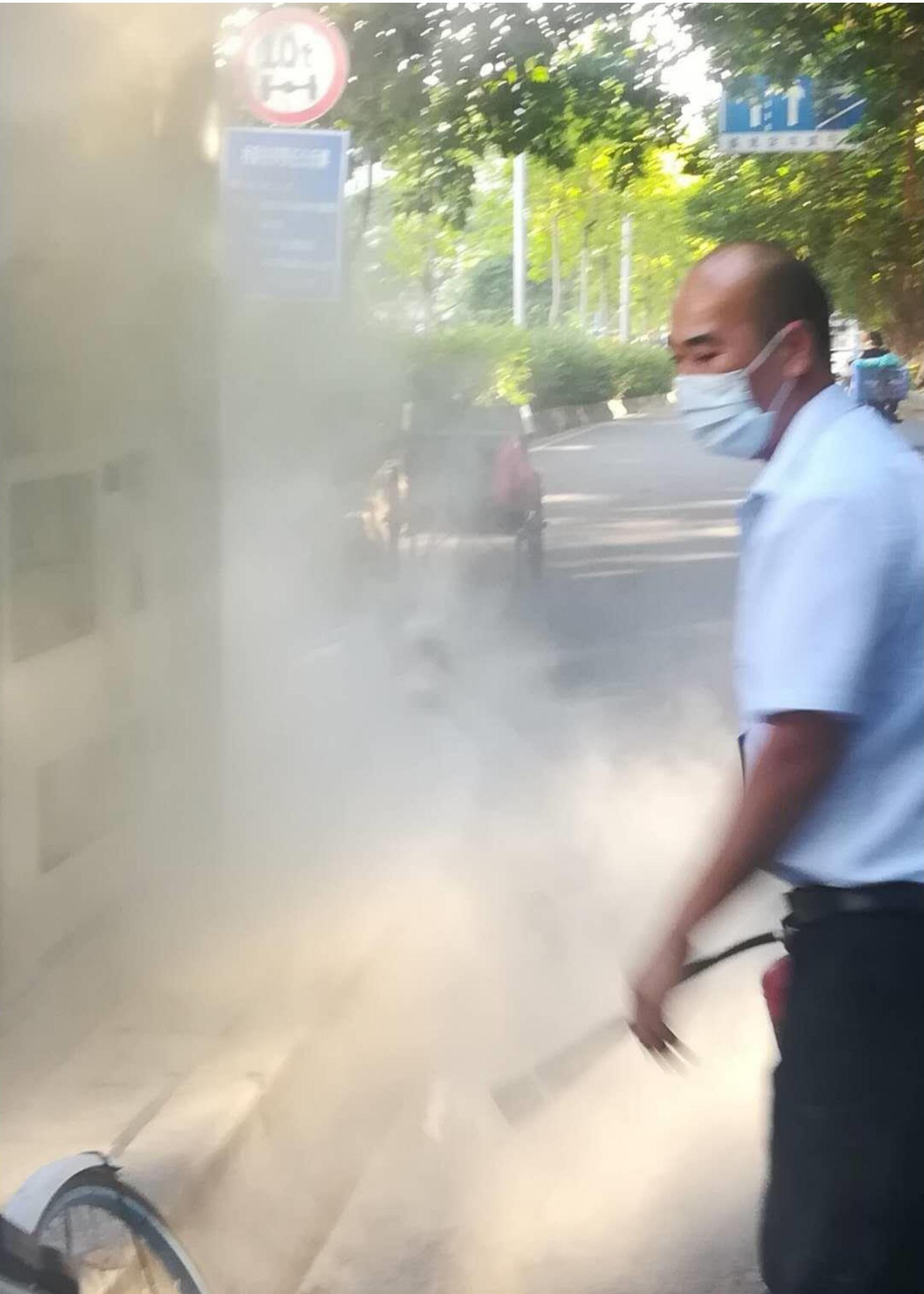 “等我一下,我先去灭个火。”这是区章文看到前方公交站冒烟的第一想法。