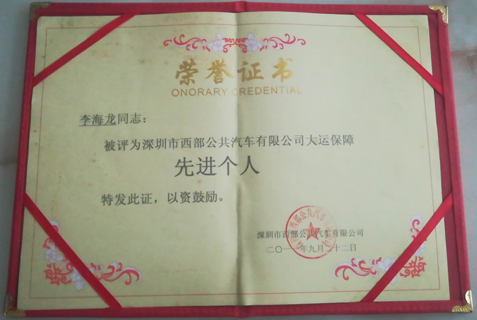2011年,曾获得大运会先进个人奖;2019年,被公司评为五星级驾驶员,并每年代表车队参加分公司主持的安全生产月桌面推演,连续几年获得一等奖。