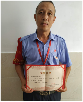 2019年胡春平被评为“安全一星级”驾驶员的荣誉称号,这是公司对胡师傅的肯定,是胡师傅对工作的热情和付出获得的荣誉。