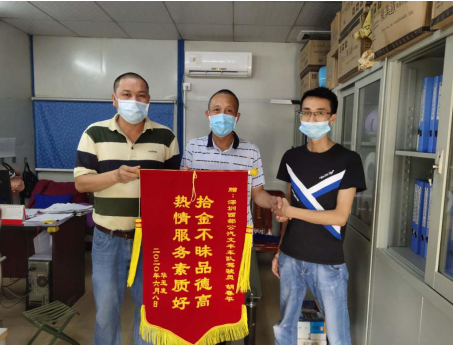 2020年6月13日上午,宝安市民华先生将一面绣着“拾金不昧品德高,热情服务素质好”的锦旗,送到西部公汽文丰车队营运服务办公室,连声称赞M253线驾驶员胡春平拾金不昧的好品德。
