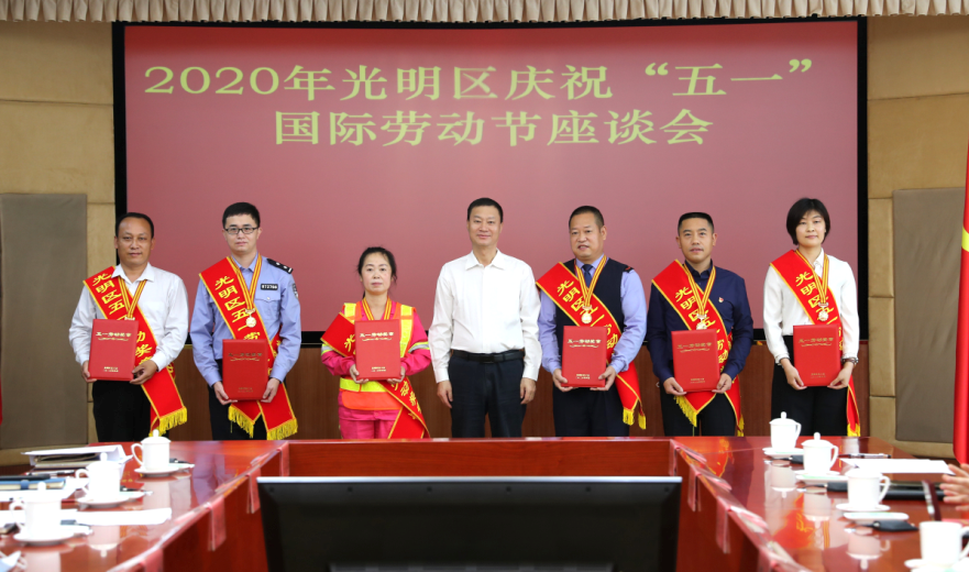李长城(右三)光荣获评“光明区五一劳动奖章”称号