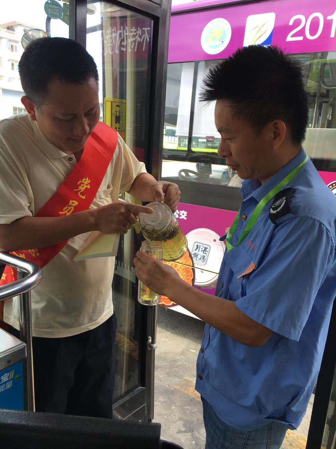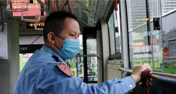 疫情爆发期间,虽然乘客比平时少了许多,但是余就爱对待爱车例保、安全隐患排查工作比以往更细致了。每天在发车之前,他先是围绕车辆检查车辆情况,随后用消毒液将车厢内的座椅、扶手、投币箱、地面等进行全面消毒,再开窗通风,保证车厢卫生干净整洁。此外,他在工作中时常提示乘客佩戴口罩,并告知公交车车身内外都经过全面消毒,放心乘坐。为满足乘客需求,行车途中他刻意打开收音机,让乘客实时了解疫情信息以及防疫措施。余就爱的举措受到了乘客的赞许,一位60岁的老爷爷笑着对公交集团的工作人员说道:“同样花一块钱坐车,我宁愿等他的车!现在是非常时期,坐着“优秀共产党员”的车,既干净又安全,既满意又放心。”