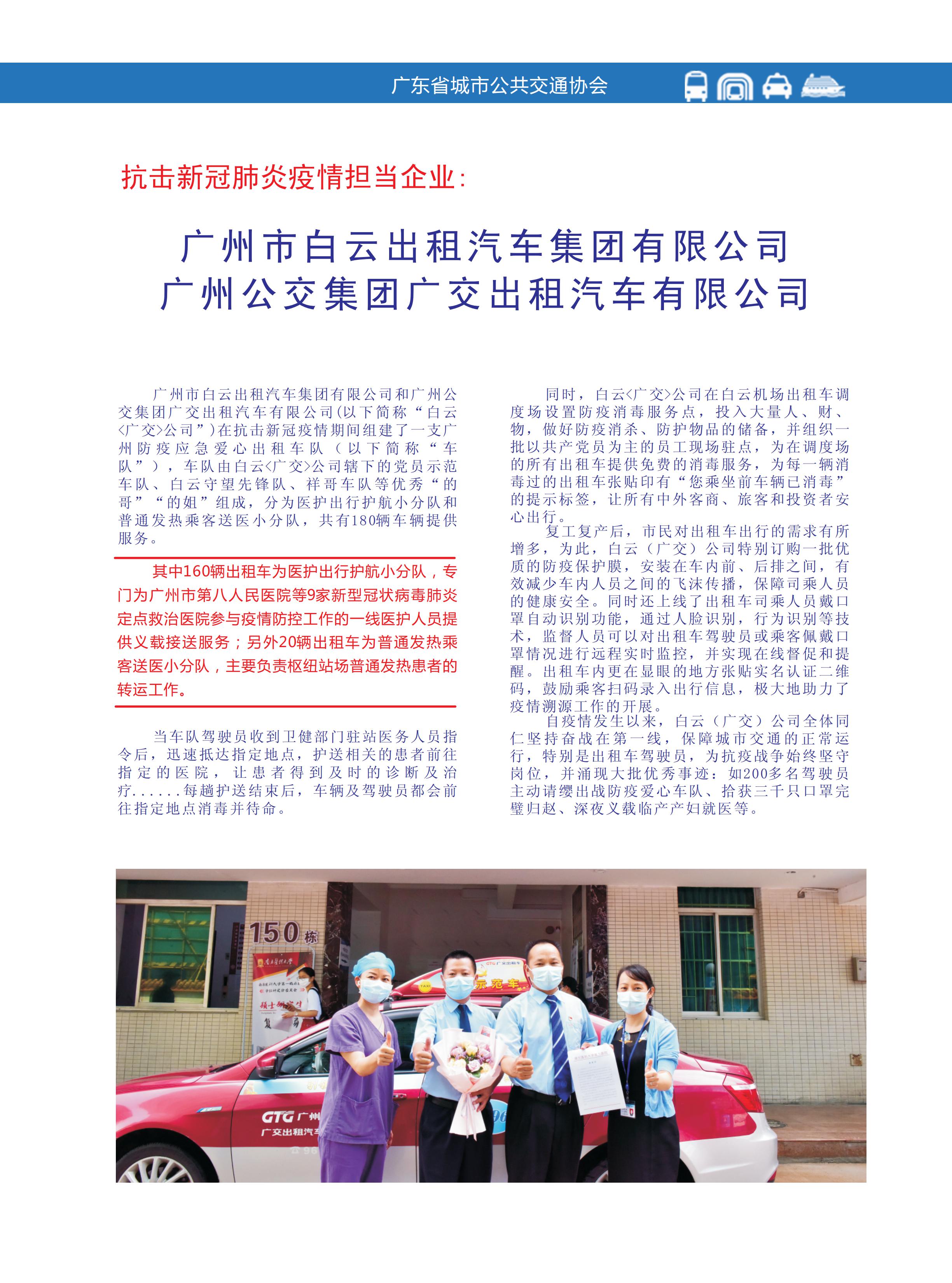 【抗击新冠肺炎疫情担当企业】广州市白云出租汽车集团有限公司