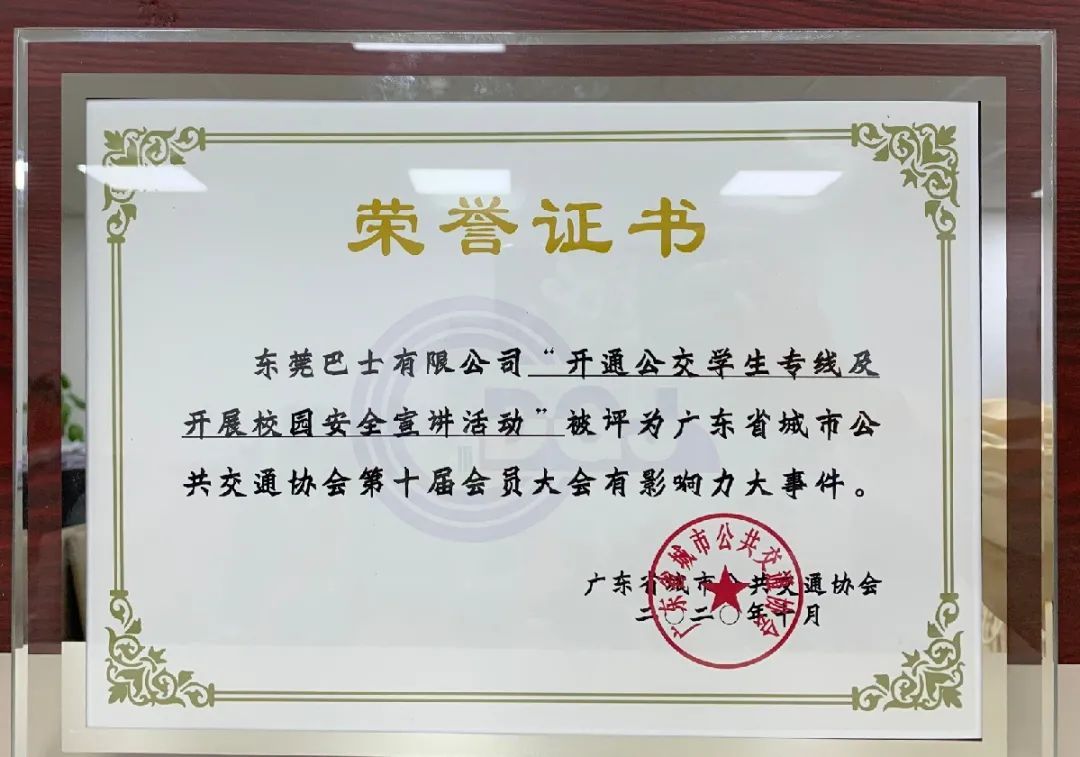 会上宣布,巴士公司荣获“第十届会员大会优秀会员”、“抗击新冠肺炎疫情担当企业”称号。此外,有4项工作成功入选“有影响力大事件”,其中“改革攻坚,圆满完成第二轮公交资源整合和线网优化工作”获得协会“十大最有影响力事件”,“完成100%公交纯电动置换工作”、“开通跨市公交线路”、“开通学生专线及开展校园安全宣讲活动”等3项工作获得“有影响力大事件”奖。