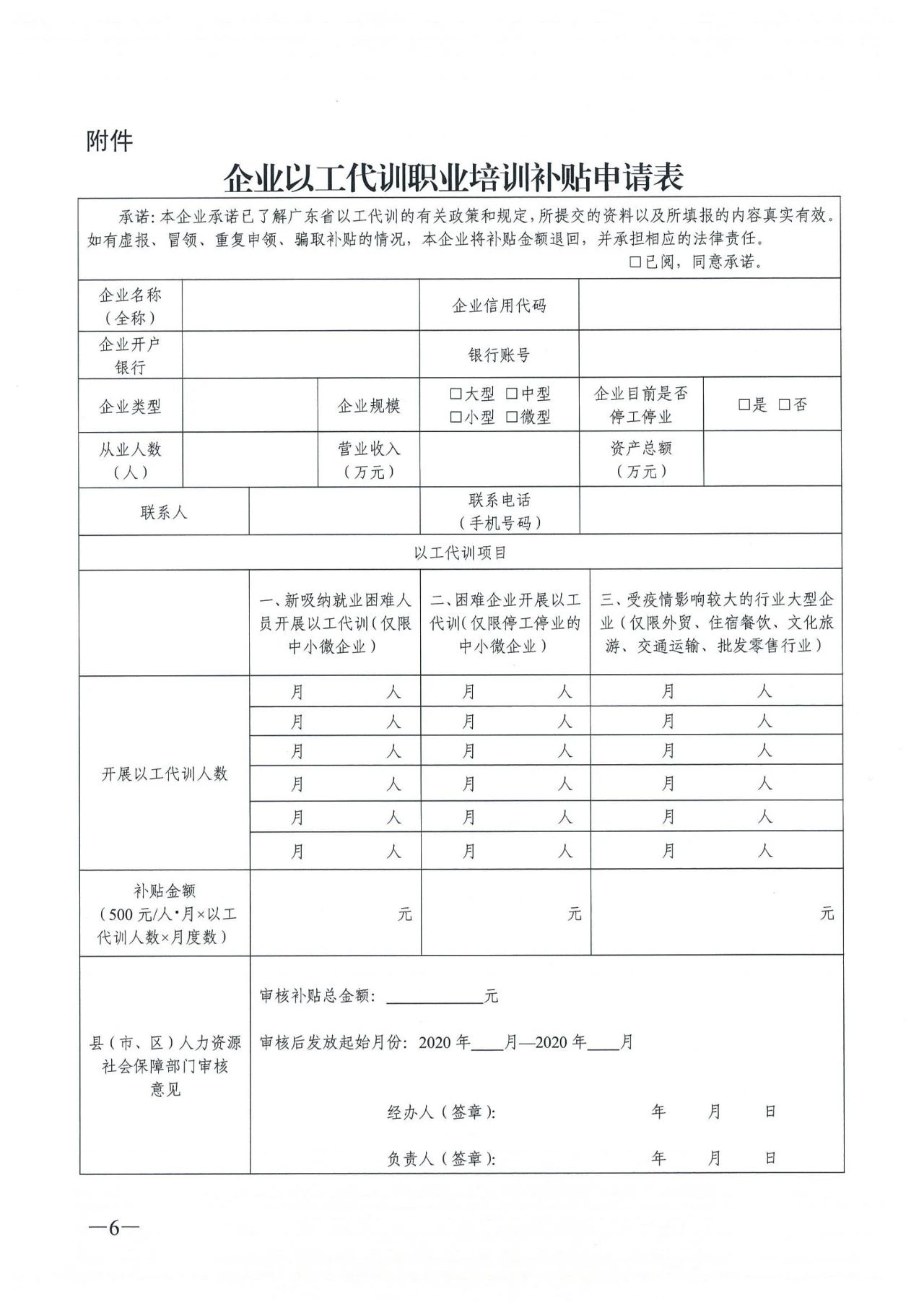 为让补贴政策最大力度惠及企业,广东省明确以工代训补贴标准为每人每月500元、最长不超过6个月;对受疫情影响较大的外贸、住宿餐饮、文化旅游、交通运输、批发零售五大行业的大型企业补贴不限高。补贴从2020年1月开始,2020年12月结束。