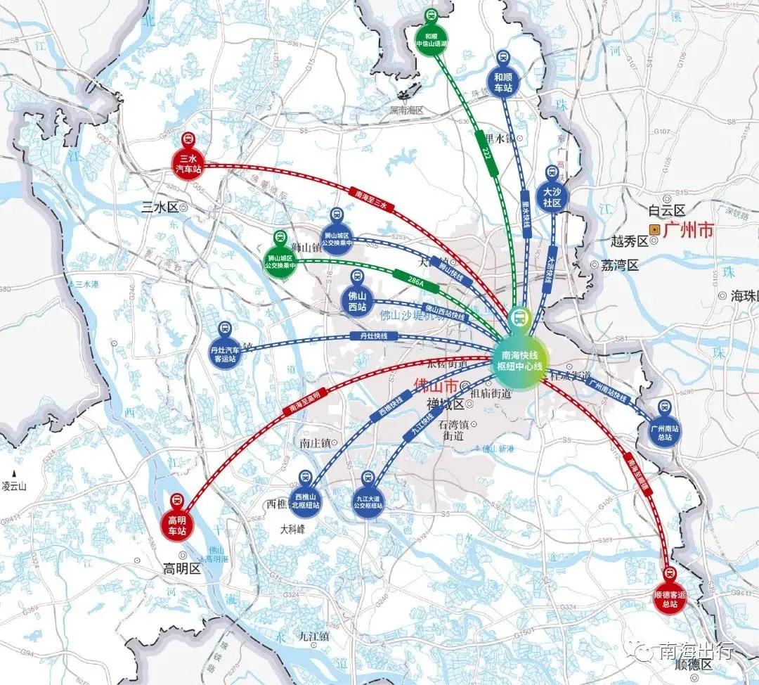南海区重点构建“跨镇+跨区+跨市”快速公交网络,正式启用南海快线枢纽中心,首批运营11条公交快线,辐射广佛多个区域,合计里程近400公里,配备运力100余台,乘坐快线到佛山西站、广州南站和西樵、里水、大沥等城市中心区域需60分钟。