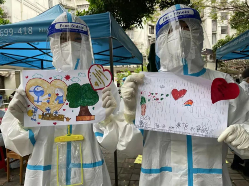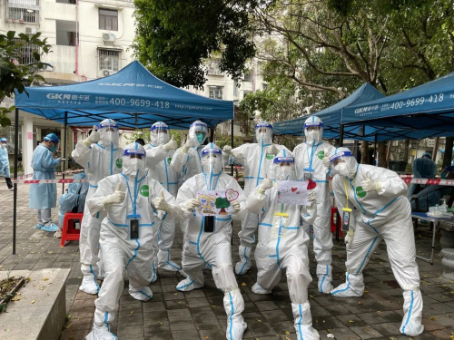 我们这支队伍负责的是福田区沙头街道沙嘴社区和南山区桃园街道12个社区居民的核酸检测、物资配送和防控宣传服务。