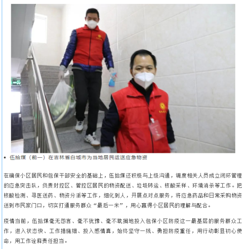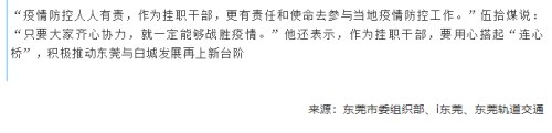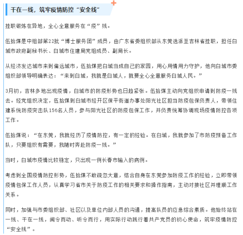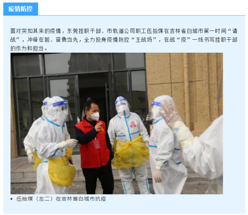 东莞市轨道公司职工伍拾煤在吉林“疫”线显担当