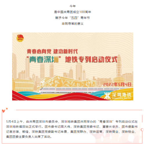向青春出发!“青春深圳”地铁专列正式启动,这个五四青年节与青春撞个满怀