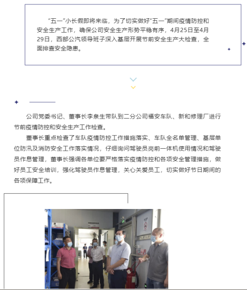 西部公汽领导班子深入基层开展“五一”节前疫情防控和安全生产大检查